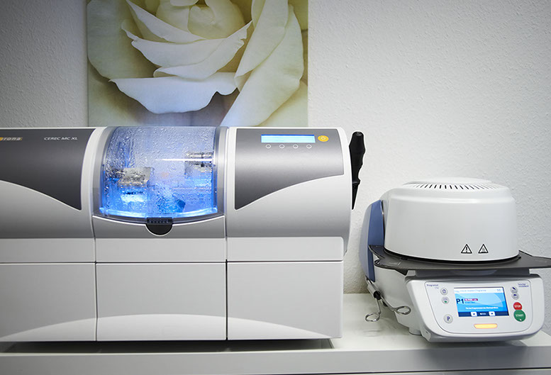 fertigen wir Kronen und Teilkronen aus Keramik in nur einer Sitzung.